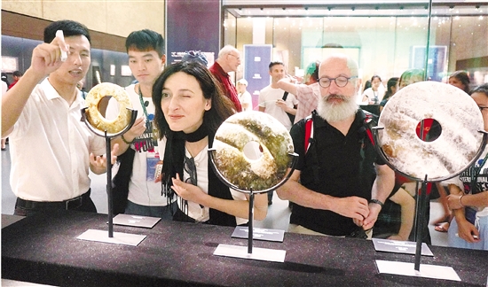 9月6日,在杭州参加第四届文化遗产世界大会的300多位专家学者,来到良渚博物院参观考察。这些专家学者来自哈佛大学、斯坦福大学、剑桥大学、牛津大学、北京大学等200多所世界一流大学和文化遗产研究机构。 本报记者 吴煌 摄 |