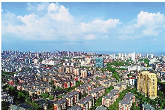 2018年8月22日,航拍镜头下的海盐城区,当年海盐衬衫总厂所在地已被新建的居民小区覆盖。