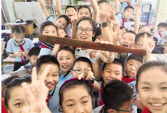 9月10日,苍南灵溪镇第二小学举行一场特殊的教师节活动,给全校所有老师赠一把“道尺”,倡导尊师重教、崇智尚学的氛围。 通讯员 张炳钩 摄