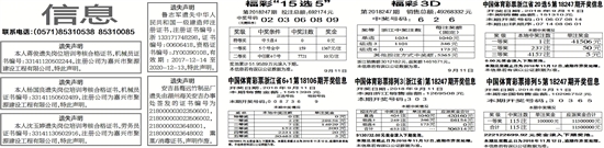 浙江销售额3012182元,返奖额1461671元。