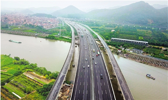 9月21日15时,随着新拓宽的萧山西小江和浦阳江大桥8车道路面的开通,杭金衢高速公路改扩建一期工程全线通车。