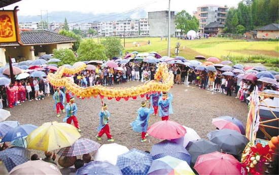 在首个“中国农民丰收节”,泰顺大安乡田野上舞起了长龙。