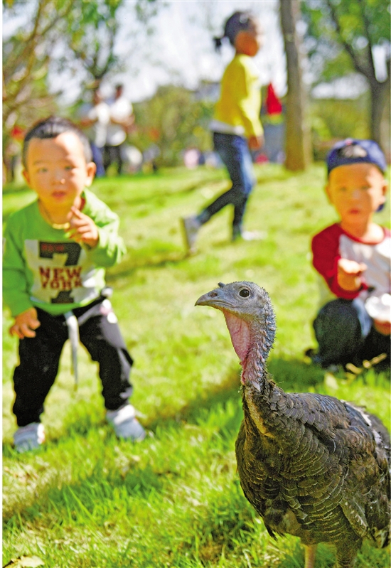 10月3日,不少武义市民在王宅镇一农庄与梅花鹿、鸵鸟等动物亲密接触。 拍友 张建成 摄