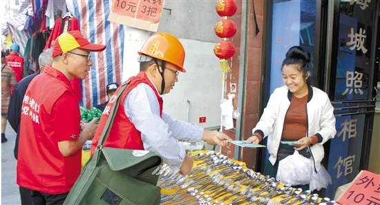 国网乐清市供电公司服务队走上街头,开展线路特巡和安全用电宣传。 黄慧慧 摄