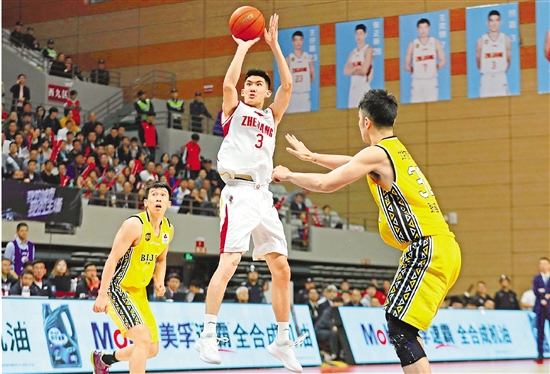 10月21日晚,中国男子篮球职业联赛新赛季开打,浙江稠州银行队主场迎战北京北控队。一开场浙江队率先进入状态,取得了两位数的领先。随着比赛深入,北京北控队逐渐将比分逼近,浙江队顶住压力最终以110比107取得开门红。另一场比赛中,浙江广厦队也战胜了福建晋江文旅队。 本报记者 王建龙 摄 |