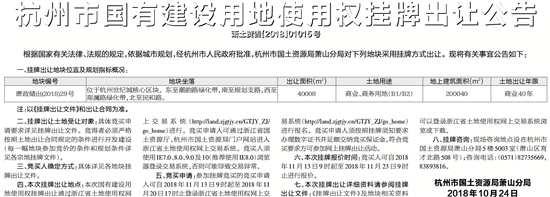 杭州市国有建设用地使用权挂牌出让公告