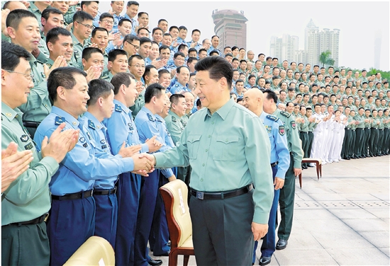 10月25日上午,中共中央总书记、国家主席、中央军委主席习近平到南部战区视察调研。这是习近平亲切接见驻广东部队副师职以上领导干部。 新华社记者 李刚 摄