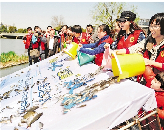 宁波志愿者开展“小鱼治水”活动,守护绿水青山。