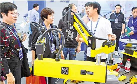 10月26日,中国(玉环)国际机床展在玉环市会展中心开展,来自全国各地的500家机床制造、智能制造、工业机器人制造厂家到会参展,吸引了众多国内外客商前来洽谈业务。 拍友 詹智 摄