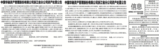 中国华融资产管理股份有限公司浙江省分公司资产处置公告