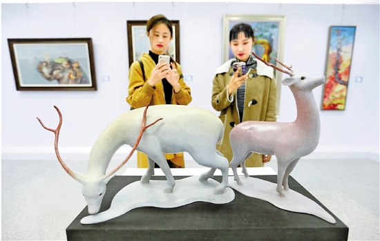 10月28日,为期15天的2018全国大学生艺术年度大展在山东省青岛市即墨区德馨艺术中心开幕,来自全国44所院校的420余件作品亮相,涵盖国画、油画、版画、雕塑等门类。