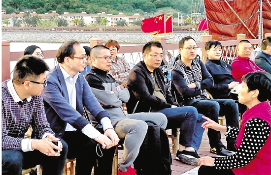 舟山蚂蚁岛成了党员党性教育红色基地。11月1日,当年参与“三八”海塘建设的老党员丁荷叶(右一)给普陀人民医院六横分院党员上党课。 拍友 于越 余超群 摄