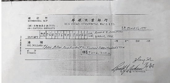 香港华侨银行寄出的支票。