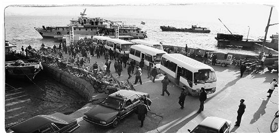 图为当年金塘岛大浦口客运码头乘客排队等候摆渡的情景。 拍友 姚峰 摄