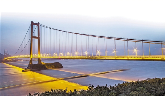 如今,跨海大桥带来的红利让舟山这座“千岛之城”向着更高更远的目标进发。图为西堠门大桥夜景。 本报记者 杨朝波 尹海木 余若望 摄影报道