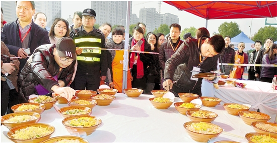 新昌炒年糕技能大赛现场。 拍友 俞晓委 摄