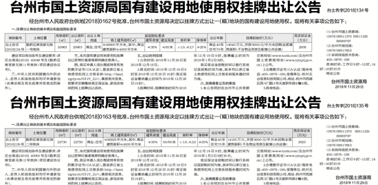 台州市国土资源局国有建设用地使用权挂牌出让公告 台土告字[2018]135号