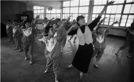 1997年9月29日,学校舞蹈教师叶娟娟为学生示范动作。