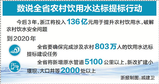 今后3年,浙江将投入136亿元用于提升农村饮用水,破解农村饮水安全问题