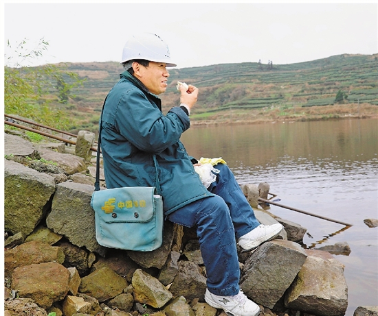 投递途中肚子饿了,黄建桥就吃点随身带的干粮。