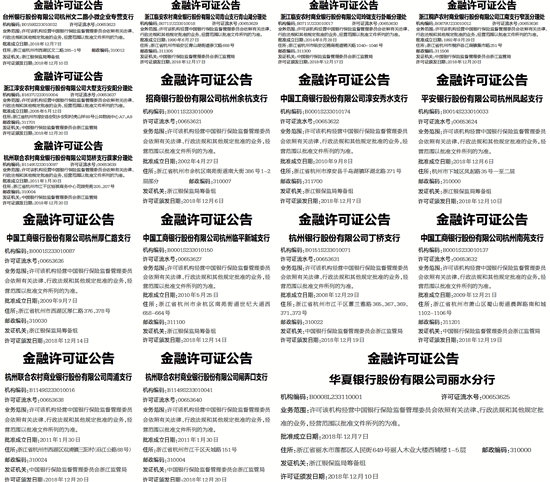 发证机关:中国银行保险监督管理委员会浙江监管局