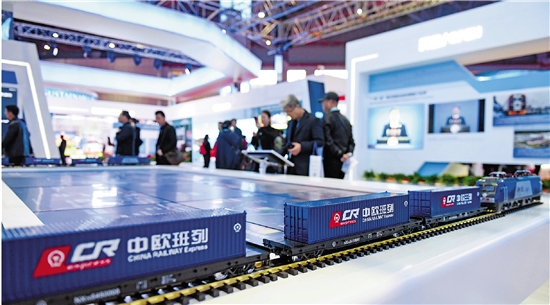 2018年11月8日,上海国家会展中心中国馆,中欧班列模型吸引了参观者的目光。