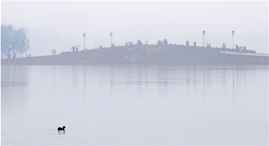 1月4日,杭州连续多日阴雨,西湖笼罩在漫漫雨雾之中。