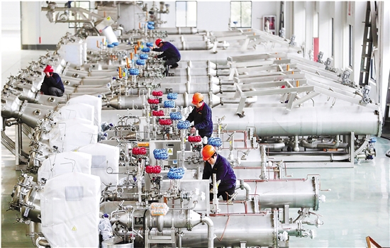 1月6日,浙江中特智能装备股份有限公司生产车间内,员工在生产自主研发的ZNJ高温高压低浴比液流染色机。近年来,该企业积极抢抓“一带一路”建设带来的发展机遇,产品远销孟加拉国、越南、印尼、菲律宾等20多个国家和地区,海外销售额占比60%左右。 拍友 王正 摄 |