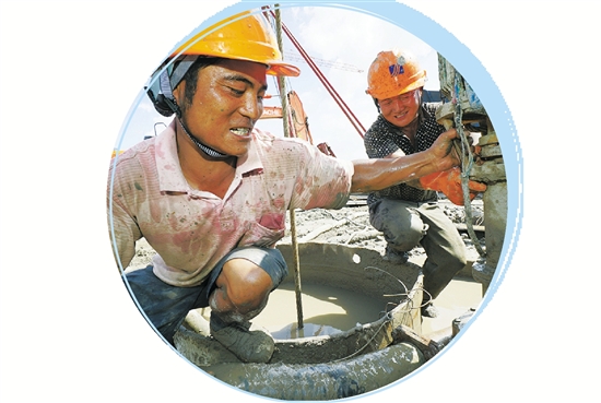 2018年8月中旬,嘉兴市杭嘉湖扩大南排工程长山闸排水泵站施工现场