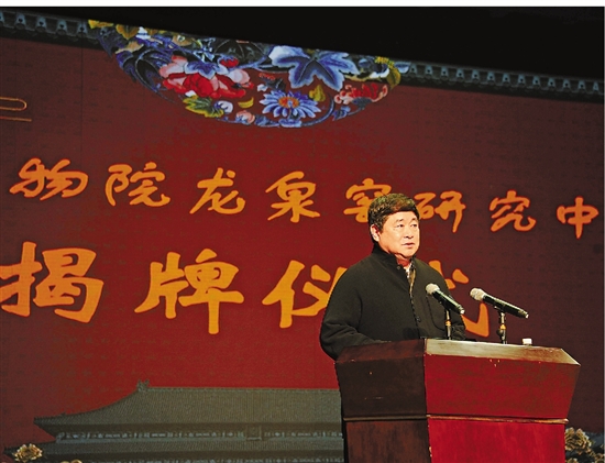 | 1月11日,故宫博物院龙泉窑研究中心在龙泉揭牌成立。龙泉和故宫博物院将在龙泉窑遗址保护及青瓷藏品的研究、修复、宣传等方面紧密合作。图为故宫博物院院长单霁翔出席揭牌仪式。 本报记者 郑欣慰 市委报道组 叶炜婷 拍友 陈李波 摄 |