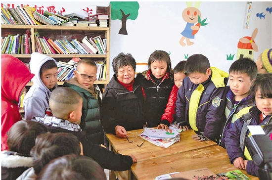 周秀芳为桐林弘盛希望小学里的孩子们讲故事。