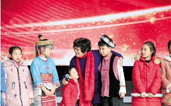 在“最美浙江人·浙江骄傲”2018年度人物颁奖典礼上,周秀芳和8个来自湖南溆浦山区的孩子一起唱起了瑶族歌谣。