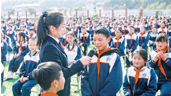 遂昌县检察院鲁冰花法治宣讲团成员在该县民族中学上法治课,受到师生们的广泛欢迎。