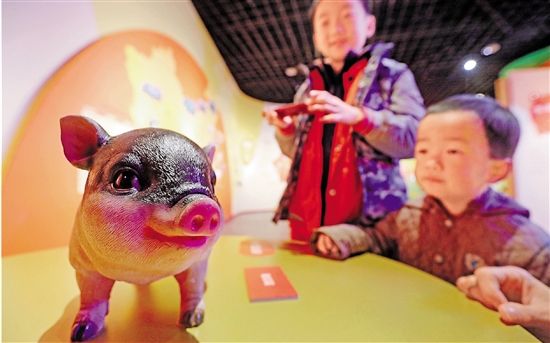 2月3日,“己亥年猪年大吉贺岁展”在浙江自然博物馆展出。展览展示猪的驯化过程、猪在人类生活中的重要作用以及生肖猪的艺术形象,让人们重新认识这些体态浑圆、憨态可掬的动物。