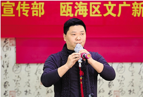 胡俊吹奏葫芦丝。 本报记者 蒋超 摄