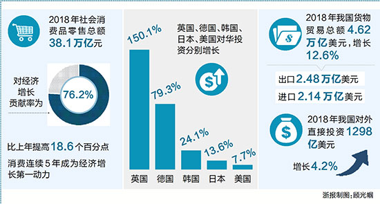 2018年我国货物贸易总额4.62万亿美元,增长12.6%