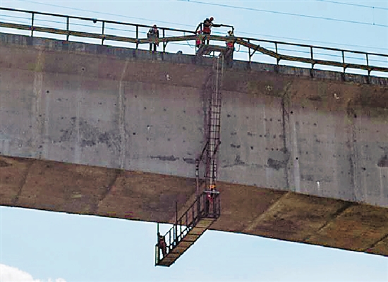左图、上图:2月12日,桥隧工人在天生桥特大桥桥面进行巡检。