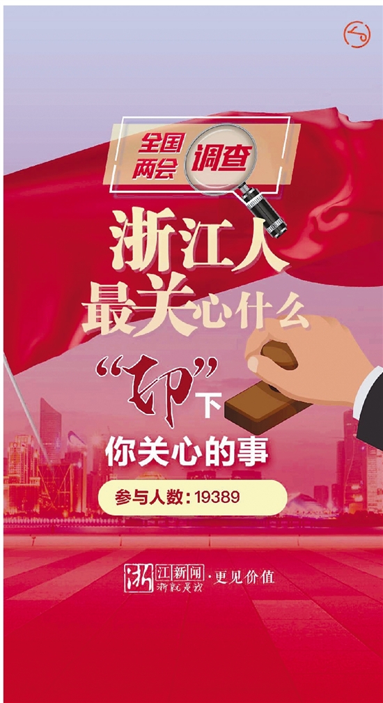 全国两会召开前夕,浙江新闻客户端推出互动小调查H5《全国两会浙江人最关心什么 “印”下你关心的事》,发布后7小时内就有近两万名用户参与调查。针对“最多跑一次”改革、“三服务”活动、乡村振兴战略、大湾区建设等社会热点,用户纷纷浏览、点击,在手机屏幕上留下自己最关注的热词,“印”刻期待、展望未来。
