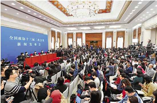 3月2日,全国政协十三届二次会议在北京人民大会堂召开新闻发布会,大会新闻发言人郭卫民回答中外记者提问。