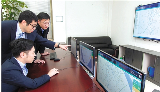 工作人员正在利用智慧电务平台,实时监控全区域配电房运行情况 刘光涨 摄