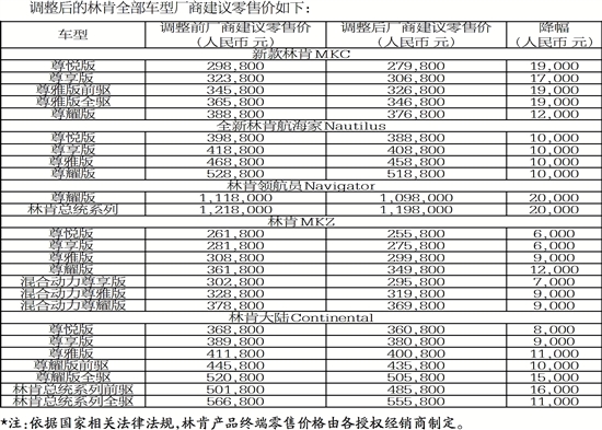 *注:依据国家相关法律法规,林肯产品终端零售价格由各授权经销商制定。