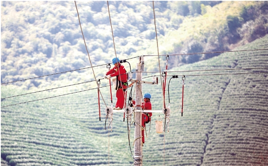 安吉电力部门架设变压器保障茶农用电 张卉 摄