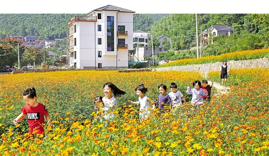孩子们在莫干山镇仙潭村的花海里嬉戏(资料照片)。 镇政府提供