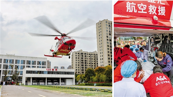 | 4月3日,舟山启用直升机紧急运送一位急性重症胰腺炎患者前往上海医院救治,全程仅用时45分钟。这是舟山市构建空中急救网络过程中首次利用直升机送重症患者跨省出岛。 本报记者 余若望 拍友 王江伟 摄 |
