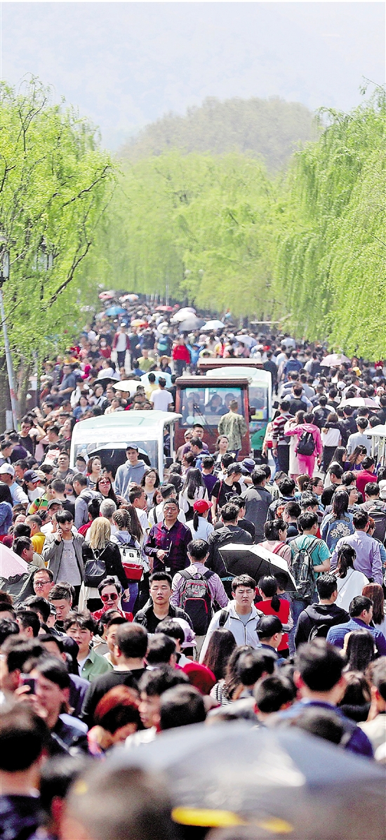 清明小长假,杭州西湖白堤上游客爆棚。 本报记者 林云龙 吕之遥 摄