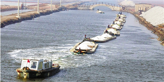 4月17日,南堡盐场运盐船只在运输河道内行驶。眼下正值春盐收获季节,在位于河北唐山市曹妃甸区南堡经济技术开发区的南堡盐场,运输河道内一片繁忙。货船将新产的春盐源源不断地运往仓储码头卸船入库。 新华社发