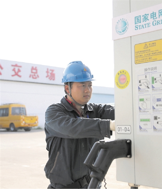 国网东阳市供电公司的工作人员完成东阳市首个公交充电站建设 王俊男 摄