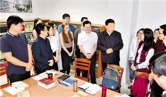 2018年5月2日,中共中央总书记、国家主席、中央军委主席习近平来到北京大学考察。这是习近平在北京大学马克思主义学院,与中外学生亲切交谈。 新华社记者 李涛 摄