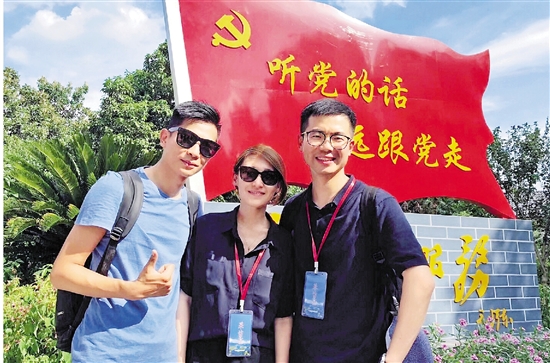 2018年8月,浙江日报记者刘乐平(右)、陈佳莹(中)、金梁(左)参与中宣部组织的“大江奔流——来自长江经济带的报道”主题采访活动。