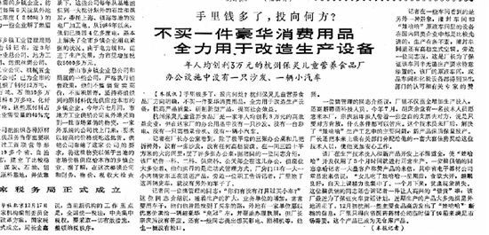 刊于1988年12月18日《浙江日报》头版关于娃哈哈的报道。